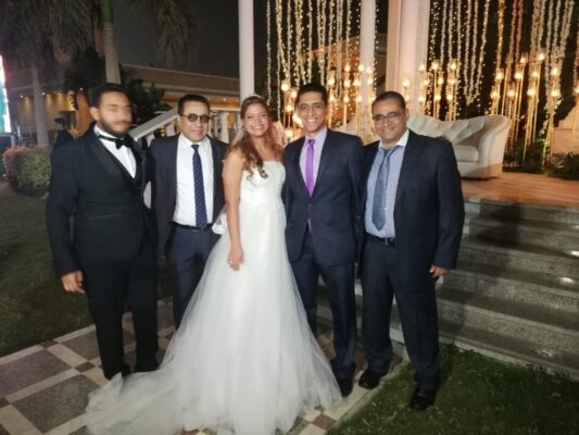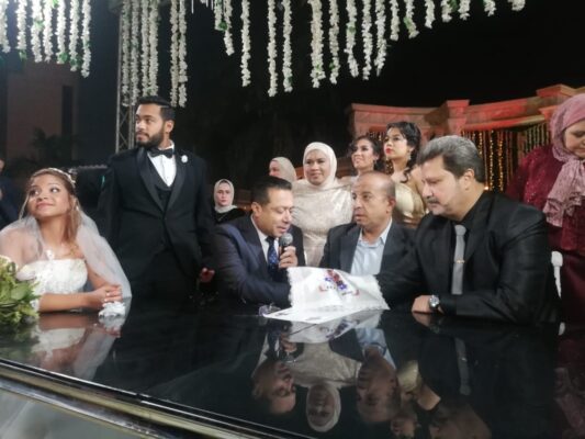 واقتصر الحفل الذي اقيم بفندق طيبة روز علي الاهل والاقارب نظرا للظروف كورونا
