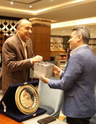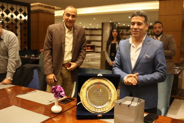 كما قام مساعدى رئيس الشركة ومديرى العموم بتقديم التهنئة متمنيين له النجاح والمزيد من التوفيق فى موقعه الجديد. وفى نهاية الحفل، قام السيد رئيس مجلس الإدارة بتسليم درع الشركة للأستاذ/أشرف ميرة أعقبه التقاط صور تذكارية.