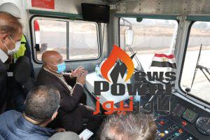 الوزير يستقل جرار اختبار السكة للقطار الكهربائي الخفيف LRT في المسافة من محطة عدلي منصور حتى كوبري الروبيكي 1 للتأكد من انتهاء وجاهزية وصلاحية أعمال السكة