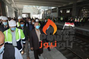 ثم استقل الوزير جرار اختبار السكة للقطار الكهربائي في المسافة من محطة عدلي منصور حتى كوبري الروبيكي 1 (كوبري مسار للقطار) للتأكد من انتهاء وجاهزية وصلاحية أعمال السكة بتلك المسافة، و تفقد وزير النقل عدد من محطات المشروع حيث تابع أعمال تركيب المعدات الكهروميكانيكية وبوابات التذاكر والشاشات بالمحطات والتحكم ونظم الاشارات حيث يجرى تركيب أعمدة الكاتنري التي تغذي القطار بالكهرباء ومد الكابلات الخاصة بالقوى الكهربائية والاشارات والإتصالات وكذلك تم الاطلاع على معدلات تنفيذ الأعمال المدنية والتشطيبات للمرحلتين الأولى والثانية والتي وصلت لمرحلتها الاخيرة (محطات وكباري المشروع) تمهيداً للتشغيل التجريبي للمشروع وحيث تم الإنتهاء من جميع كباري السيارات بالمشروع (عدد 4 كباري) وتشغيلها أمام حركة السيارات وهي كباري “الهايكستب والمستقبل 1والمستقبل 2 و الشروق” ، بالإضافة إلى الانتهاء من عدد 7 كباري لمسار القطار الكهربائي وهي “الإسماعيلية وجنيفا والروبيكي1و 2 والسويس والعاصمة 1 و العاصمة ٢ كما يشتمل المشروع على عدد 3 أنفاق تم الإنتهاء من تنفيذها بنسبة ١٠٠ % وهي نفق سيارات عند حدائق العاصمة ونفقين لمسار القطار وهما “نيو هليوبوليس وبدر”