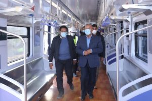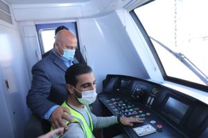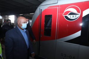 بعدها تفقد الوزير كافة محطات المرحلة الأولى واستقل احد القطارات الذي يتم تشغيله تجريبياً وذلك من محطة العبور مرورا حتى محطة بدر مرورا بمحطات المستقبل فالشروق فهليوبوليس الجديدة ثم تفقد جاهزية ورشة القطار الكهربائى الخفيف LRT ببدر، والتي تشمل 26 مبنى وتبلغ مساحتها 80 فدانا، بالإضافة إلى متابعة الاختبارات التي تتم على القطارات التي تم توريدها، حيث وصل 12 قطارا (كل قطار 6 عربات) من إجمالى 22 قطارا لازمة للتشغيل، وجرار ديزل خاص بالورشة، وجار شحن الـ 10 قطارات المتبقية حيث ستصل تباعاً وفقا للمواعيد المخططة وحيث يبلغ إجمالي تكلفة القطارات ، 227 مليون دولار، و المصنعة والموردة من شركة كريك/ أفيك أنتل الصينية