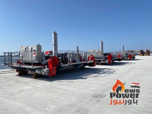 وحيث تعتبر هذه الاوناش هي الأولى فى مصر وتعمل باستخدام اقطاب التوصيل الكهربية و التى تستخدم فى التداول بالساحات الخاصة بالحاويات وحيث تم تفريغ مكونات الأوناش من السفينة على الأرصفة الخاصة بمحطة TMT والتى أصبحت جاهزة لاستقبال السفن وقد استغرقت عملية الانزال أربعة أيام تحت اشراف فريق من الخبراء من شركة Liebherr الألمانية وشركة تشغيل المحطة والعمالة المصرية المدربة لافتا أنه قد تم البدء في عملية تجميع هذه الأوناش على ساحة محطة TMT تحت إشراف نفس الفريق والمتوقع ان تصل مدة التركيب والتجهيز الى (6 أسابيع) من العمل الشاق