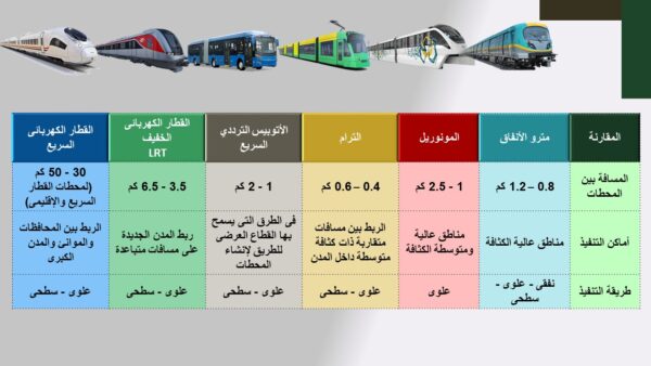 3. الطاقة الإستيعابية في الساعة : 20 – 40 ألف راكب/ساعة/إتجاه
