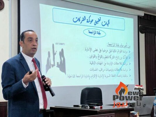 وتفضل المحاسب حسام مصطفى بشرح وافى للتعريف بحوكمة الشركات ومبدء الشفافية والنزاهة والتوعية بمخاطر الفساد وعرض مدونات وسياسات الشركة القابضة لكهرباء مصر وشركاتها التابعة