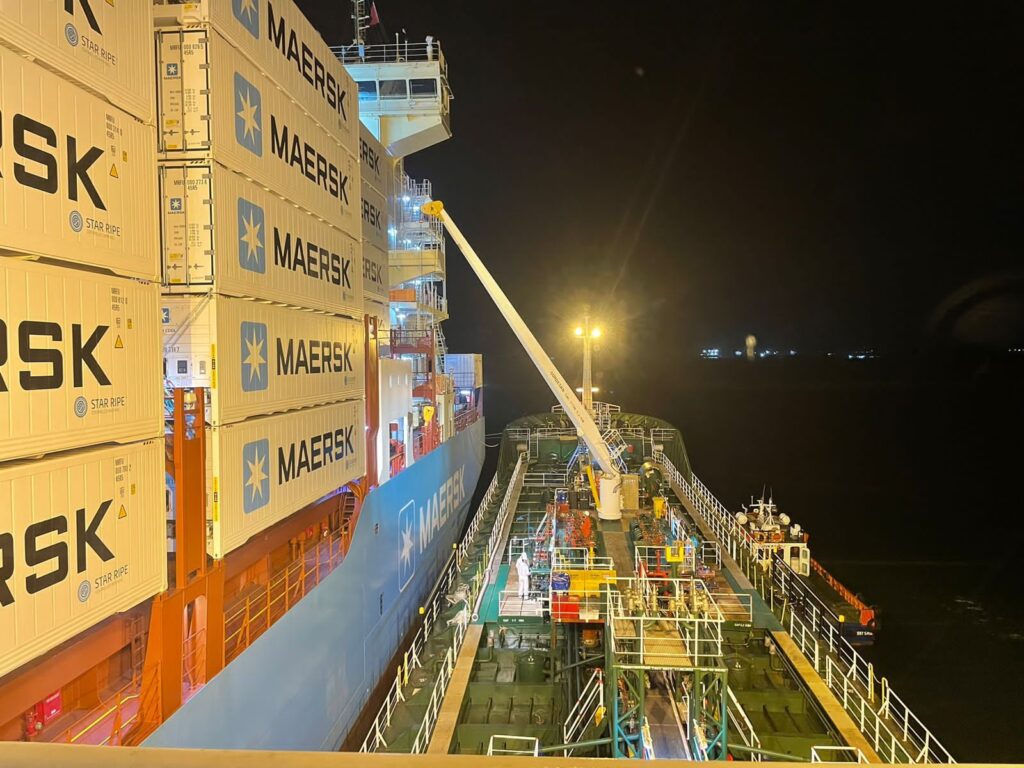 وقد أعلنت المنطقة الاقتصادية في بيان رسمي صادر صباح اليوم، عن تنفيذ خدمة تموين سفينة الحاويات للخط الملاحي ميرسك التي تم استقبالها منذ يومين بميناء شرق بورسعيد ،وهي أول سفينة حاويات بالعالم تعمل بالوقود الأخضر ، حيث تم تزويدها من البارجة Lara S التابعة لمقدم الخدمة شركة OCI العالمية والعاملة في مجال تموين السفن بالوقود الأخضر وأكبر منتج لوقود الميثانول عالمياً، حيث تم تموين سفينة الحاويات بكمية 500 طن من الميثانول الأخضر بمحطة قناة السويس للحاويات المشغل الرئيسي لميناء شرق بورسعيد، وتعد هذه الكمية لتموين السفينة هي الأعلى مقارنة بتزويد ذات السفينة بالميثانول الأخضر في محطاتها السابقة في كوريا وسنغافورة ضمن رحلتها من آسيا لأوروبا مروراً بميناء شرق بورسعيد في مصر .