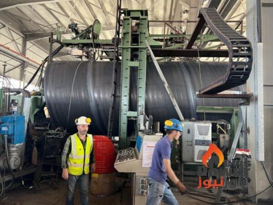 علي أرض الواقع مصنعا ضخما يقوم بتصنيع كافة المواسير باقطار مختلفة.