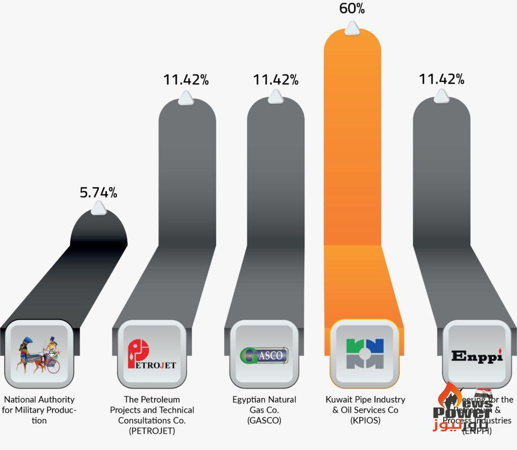 • الشركة الهندسية للمشروعات البترولية والكيماوية (إنبي) بنسبة 11,4%