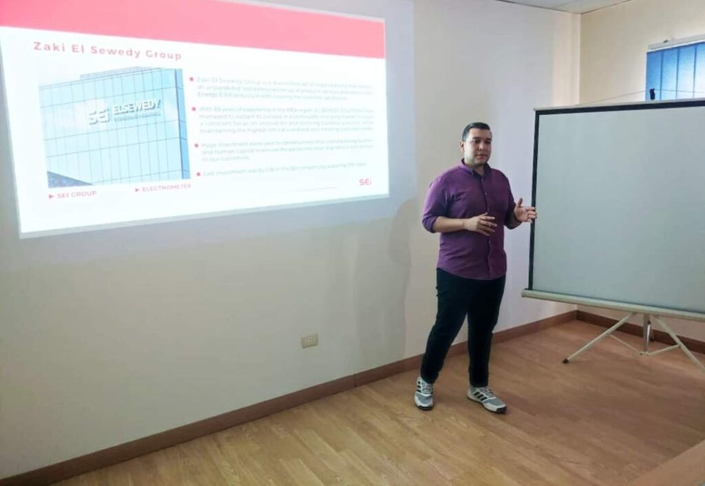 قام وفد من المكتب الاستشاري ABCG بزيارة لمصانع السويدي للصناعات الهندسية ” ساي” ، اشتملت الزيارة علي التعرف علي خطوط الإنتاج ومنتجات الشركة المختلفة بما فيها لوحات الجهد المنخفض والمتوسط وقد تم عمل عرض تقديمي للأنظمة التي تقدمها الشركة KNX & BMS لبحث سبل التعاون في هذه المجالات.