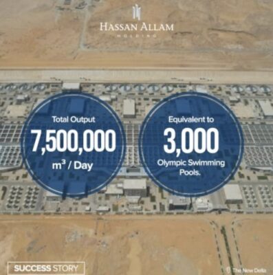 تتمتع أكبر محطة من نوعها في العالم، وهي محطة الدلتا الجديدة لمعالجة مياه الصرف الزراعي في مصر، بقدرة مذهلة تبلغ 7.5 مليون متر مكعب يوميًا. تم تصميم وبناء المحطة من قبل اتحاد شركات حسن علام للإنشاءات، اوراسكوم للانشاءات وماتيتو والمقاولون العرب، بموجب تفويض من الهيئة الهندسية – إدارة المياه.