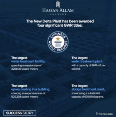حطمت محطة معالجة الدلتا الجديدة في مصر الأرقام القياسية من خلال تحقيق أربعة أرقام قياسية مرموقة في موسوعة جينيس العالمية (GWR)