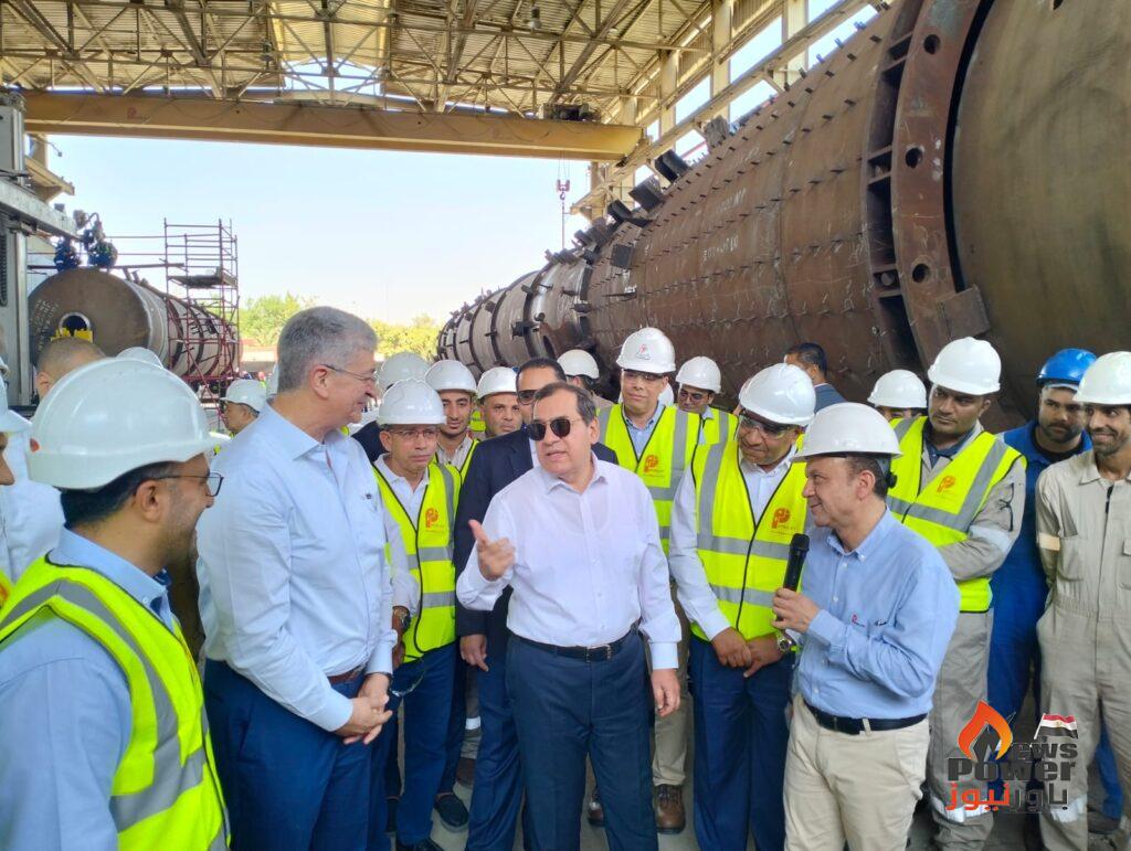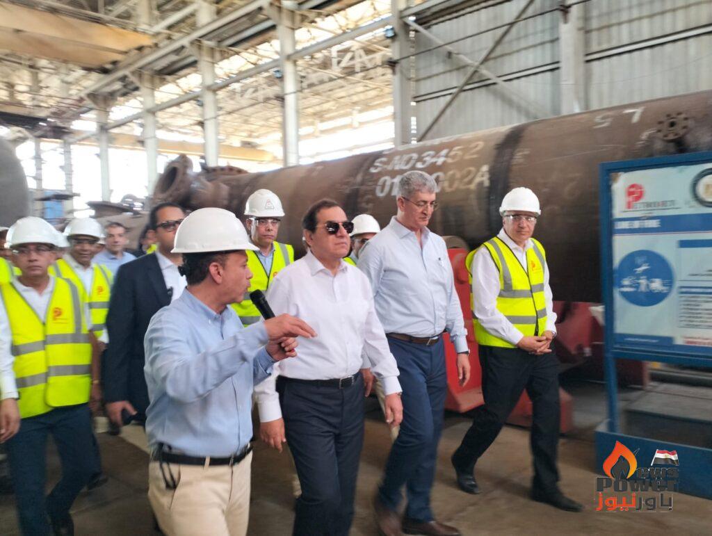 واستعرض اهم المعدات التخصصية التى تقوم الورش بتصنيعها ومنها المبادلات الحرارية وابراج التقطير واوعية الضغط وافران المعالجة الحرارية والمبردات الهوائية بالاضافة الى اعمال اصلاح وصيانة المعدات الاستاتيكية المتقادمة، لافتا إلى تاهيل واعتماد جميع ورش التصنيع بشهادات الجودة العالمية فى مجال تصنيع المعدات الاستاتيكية (ASME STAMP) ، مشيرا إلى اهم المعدات التى تم تصنيعها والتى ساهمت فى تنفيذ العديد من المشروعات الكبرى مثل مشروع تنمية حقل غاز ظهر ومشروع تطوير حقل غاز غرب الدلتا ومشروع مجمع الاسمدة الازوتية بالعين السخنة ومشروع مجمع الاسفلت الجديد بمعمل السويس لتصنيع البترول بالاضافة الى العديد من المشروعات الجارى تنفيذها اهمها مشروع تطوير مجمع غازات الصحراء الغربية التابع لشركة جاسكو ومشروع مجمع التفحيم لشركة السويس لتصنيع البترول ، ومشروع توسعات محطة الحمد للشركة العامة للبترول ومشروع توسعات المحطة البرية لحقل غاز ظهر ، ومشروع توسعات مصفاة ميدور ومجمع انوبك لإنتاج السولار والمنتجات البترولية عالية القيمة ومصنع إنتاج الالواح الخشبية متوسط الكثافة MDF .
