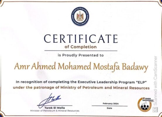 وكان من ضمن المكرمين المهندس عمرو بدوي رئيس شركة PMS الحاصل على شهادة إتمام البرنامج القيادي لتطوير الإدارة العليا الدفعة الاولى ELP ، وذلك تحت رعاية وزارة البترول والثروة المعدنية .