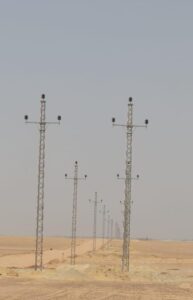 وكذلك عمل شبكة توزيع الكهرباء على الجهد المتوسط 22 ك.ف بطول حوالي 200 كم لتغذية 30 الف فدان