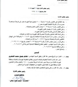 هذا هو نص القرار الذى حصل عليه موقع باور نيوز الاخبارى