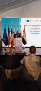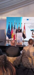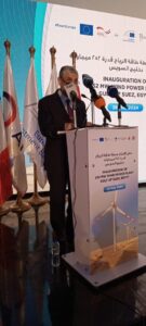 مشروع محطة طاقة الرياح بخليج السويس قدرة 252 ميجاوات والقي كلمه خلال حفل الافتتاح اعرب خلالها شاكر خلال كلمته عن تقديره العميق للشركاء الاوربيين لدعمهم وتعاونهم المستمر.