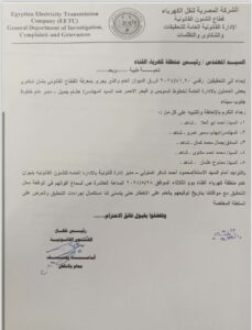 السيد المهندس / رئيس منطقة كهرباء القناه