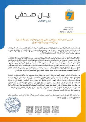 السيد مصطفى الحلواني يعرب عن شكره لمستوى الدعم الذي توليه سونلغاز لشركة السويدي إلكتريك