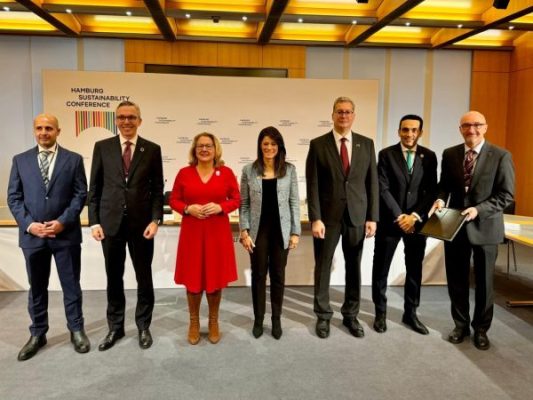 خلال مشاركته بفعاليات مؤتمر هامبورج للاستدامة بمدينة هامبورج الألمانية شهد المهندس كريم بدوى وزير البترول والثروة المعدنية بحضور الدكتورة رانيا المشاط وزيرة التخطيط والتنمية الاقتصادية والتعاون الدولى والسيدة سفينيا شولتز وزيرة التنمية والتعاون الاقتصادى الألمانية اليوم الثلاثاء توقيع اتفاق منحة من الحكومة الألمانية قدرها 30 مليون يورو بين مشروع مصر للهيدروجين الأخضر الذى تقوم بتطويره شركة سكاتك النرويجية بالتعاون مع شركات فيرتيجلوب وأوراسكوم للإنشاءات وصندوق مصر السيادى والشركة المصرية لنقل الكهرباء وشركة باور تو إكس دى أند جى جى إم بى إتش التابعة للبنك الألمانى للتنمية.