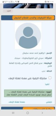 وقد شملت الحركة ندب الاستاذ إبراهيم أحمد محمد سليمان لشغل وظيفة مدير قطاع الأمن الميداني بالإدارة العامة للامن بشركة سيدي كرير للبتروكيماويات – سيدبك.