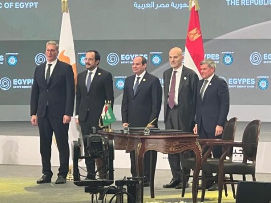 تم اليوم توقيع مذكرة تفاهم بين حكومتي مصر وقبرص وشركة شيفرون، وهو ما يمثل إنجازًا هامًا لتنفيذ الاتفاقيات التجارية الرئيسية الخاصة بمشروع غاز أفروديت (حقل أفروديت قبالة سواحل قبرص) ودعم نجاح هذا الحقل الهام.