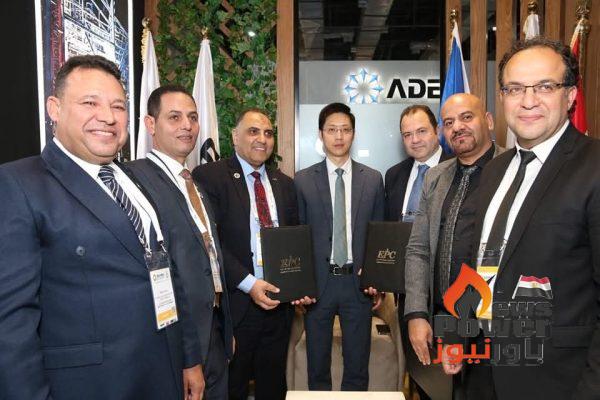 رئيس مجلس ادارة شركة البتروكيماويات المصرية والسيد المهندس ابراهيم مطاوع رئيس مجلس الادارة والعضو المنتدب لشركة بترومنت والسيد دينج الرئيس التنفيذي لشركة هاواوي بتوقيع مذكرة تفاهم لإنشاء محطة طاقة شمسية بموقع البتروكيماويات المصرية.