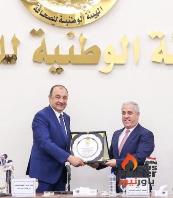 وفي نهاية الندوة، أهدى المهندس عبدالصادق الشوربجي، درع الهيئة الوطنية للصحافة، للمهندس محمد شيمي، وزير قطاع الأعمال العام، تكريما على جهوده المتميزة .