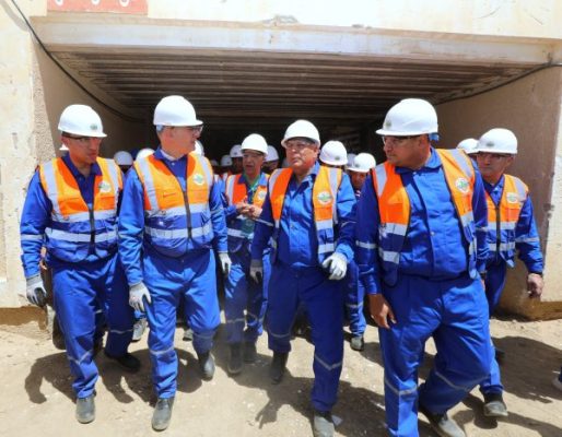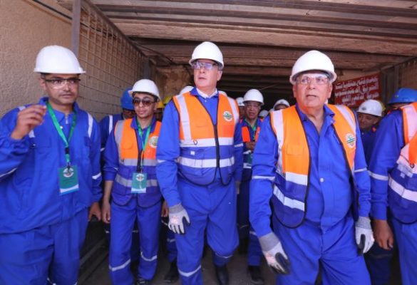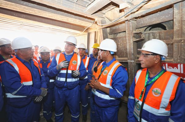 وعقب ذلك ، قام وزير البترول والثروة المعدنية ومحافظ الوادي الجديد والمرافقون بتفقد مراحل الإنتاج فى مناجم قطاع 8 وشرائح الفوسفات وكذلك فوهت المنجم تحت سطح الارض ، حيث استمع الوزير والمرافقون إلى شرح من شباب المهندسين في المنجم حول مراحل الإنتاج بدء من عمليات الاستكشاف والاستخراج والتكسير حتى المراحلة النهائية لإنتاج الفوسفات الخام ، وشدد بدوى خلال الجولة على الالتزام بإجراءات السلامة والصحة المهنية خاصة مع هذه الاعمال التى تتطلب يقظة تامة اثناء العمل وذلك لتوفير بيئة عمل امنه لجميع العاملين.