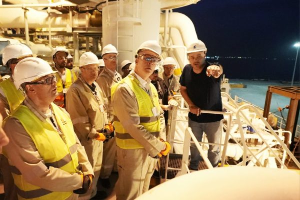 وعقب وصول السفينة البالغ سعتها التخزينية 174 الف متر مكعب غاز ، قام الوزير بجولة تفقدية على متنها، رافقه خلالها كل من المهندس يس محمد العضو المنتدب التنفيذي للشركة المصرية القابضة للغازات الطبيعية، والمهندس معتز عاطف وكيل الوزارة لمكتب الوزير والمكتب الفني والمتحدث الرسمي، والدكتور خالد البدري وكيل الوزارة للمشروعات، واللواء حسام نبيل رئيس الإدارة المركزية لأمن قطاع البترول،و المهندس وليد لطفي رئيس شركة بتروجت، والمهندس وائل لطفي رئيس شركة إنبي. وكان في استقبال الوزير لدى وصوله للميناء اللواء بحري إيهاب صلاح رئيس هيئة ميناء الإسكندرية، واللواء بحري عبدالقادر درويش رئيس الشركة المصرية للمحطات متعددة الأغراض .
