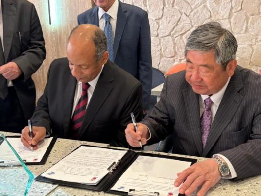 علي هامش الاحتفال بمرور عشرون عاما علي التعاون .. وقعت الشركة المصرية للسبائك الحديدية برئاسة المهندس عيد مهلل مع شركة (توموى) اليابانية برئاسة Mr Akitomo Tamai عقد تصدير 10 آلاف طن سنوياً من غبار السليكا لمدة خمس سنوات أخرى حتى عام 2030 بقيمة 17.5 مليون دولار.