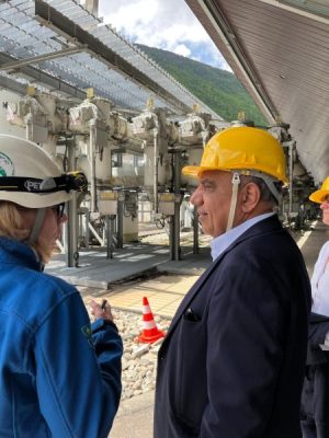 استمع الدكتور محمود عصمت إلى شرح تفصيلي من مسئولى المحطة حول أهمية مشروعات توليد الطاقة الكهربائية بواسطة ضخ وتخزين المياه كأحد أهم مصادر إمداد الشبكات الكهربائية بالطاقة النظيفة المستدامة والمستقرة، وكذلك معدلات الوفر فى الوقود والتكنولوجيا المستخدمة فى محطة Grand Maison التى تبلغ قدرتها 1800 ميجاوات وتتكون من 12 توربينة و 9 مضخات وتشمل محطتين للطاقة، الأولى فوق سطح الأرض لتوليد الطاقة الكهرومائية التقليدية، وأخرى تحت سطح الأرض للضخ وتوليد الكهرباء، وأهمية عمل المحطة فى أوقات الذروة لتحقيق الاستقرار للشبكة الفرنسية، وتحتوى على وحدات متطورة تعرف بإسم الوحدات التوربينية العكسية لتكون قادرة على العمل فى اتجاهين كتوربينات لتوليد الكهرباء عند إطلاق المياه وكمضخات لرفع المياه خلال فترات انخفاض الطلب على الطاقة، وتبلغ الطاقة الكهربائية المنتجة سنوياً من المحطة 1420 جيجاوات ساعة، ويمكن للمحطة زيادة إنتاجها خلال ثلاث دقائق لتغذية ما يصل على 1.8 جيجاوات من الكهرباء.