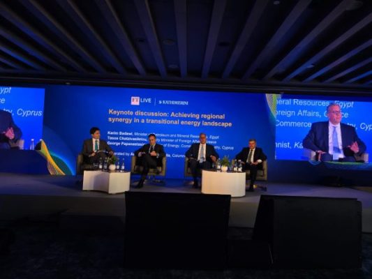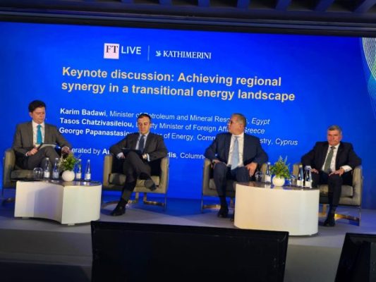 وقد شارك المهندس كريم بدوي كمتحدث رئيسي في جلسة نقاشية تحت عنوان: ” تحقيق التآزر الإقليمي في مشهد الطاقة الانتقالي” بمشاركة كل من جورج باباناستاسيو، وزير الطاقة والتجارة والصناعة القبرصي، وتاسوس تشاتزيفاسيليو، نائب وزير الخارجية اليوناني.