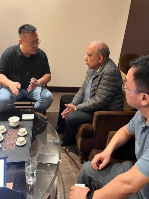 فى اطار توجه الدولة بدعم وتوطين الصناعة ، واستراتيجية وزارة الكهرباء والطاقة المتجددة بزيادة نسبة المكون المحلي فى مختلف المشروعات ، لاسيما فى قطاع الطاقة المتجددة وتقنيات تخزين الطاقة بنظام البطاريات ، وعقب وصوله الى جمهورية الصين الشعبية للمشاركة فى مؤتمر شنغهاي للطاقات المتجددة وحلول الطاقة النظيفة ، استهل الدكتور محمود عصمت وزير الكهرباء والطاقة المتجددة اللقاءات مع الشركات المصنعة للمهمات والمالكة للتكنولوجيا الخاصة بها ، واجتمع بجيمس وا رئيس مجلس الادارة، وتومبسون مينج نائب رئيس مجلس إدارة مجموعة شركات سانجرو ” SUNGROW”الصينية العاملة فى مجالات تصنيع مهمات الطاقة المتجددة واجهزة التحكم ومنظمات عمل محولات الطاقة الشمسية وبطاريات تخزين الطاقة وانظمة الشواحن الكهربائية ، وعدد من مسئولي الشركة، وتم بحث التعاون وسبل الشراكة وآلية العمل لتوطين صناعة بطاريات تخزين الطاقة واقامة مصنع فى مصر ، وكذلك المهمات الكهربائية الخاصة بالطاقة الشمسية ، والعمل على نقل التكنولوجيا فى ضوء الاستراتيجية الوطنية للطاقة والاعتماد على الطاقات المتجددة