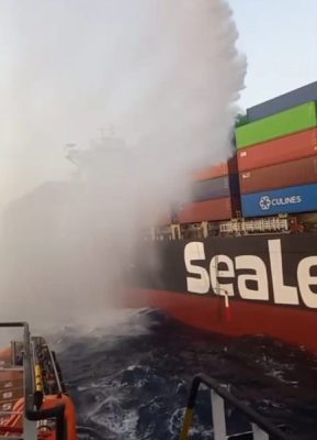 تلقت وزارة البترول والثروة المعدنية مساء يوم الثلاثاء الموافق 29 يوليو 2025، إخطارًا من غرفة المراقبة البحرية بغارب، يفيد بصدور استغاثة من مركب الحاويات “PUMBA” التابعة لشركة (MSC) للنقل البحري، وذلك بعد اندلاع حريق في غرفة ماكينات المركب أثناء تواجدها بالمجرى الملاحي على بُعد نحو 3 أميال بحرية من منصة جنوب شرق الحمد التابعة للشركة العامة للبترول.