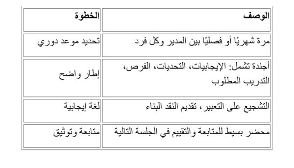 جلسة الكوتش هي لقاء فردي بين الموظف ومديره المباشر، تهدف إلى: