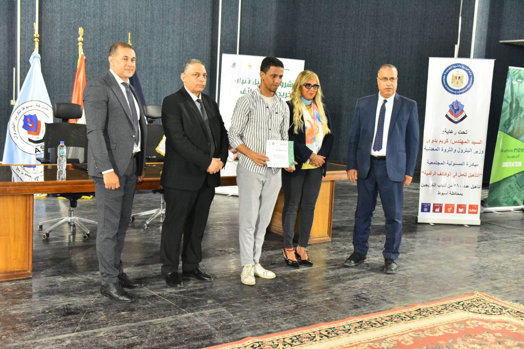 إحتفلت شركة أسيوط لتكرير البترول بتسليم شهادات التخرج لخريجى الدفعة الاولى من برنامج تأهيل عدد ٣٦٠ شاب وفتاة من شباب الخريجين بمحافظة أسيوط للإلتحاق بسوق العمل من خلال تدريبهم على الوظائف الرقمية الحرة فى ١٢ مسار متنوع فى مجال التكنولوجيا الرقمية من أجل تحقيق أهداف المبادرة و التى يمكن تلخيصها فى: