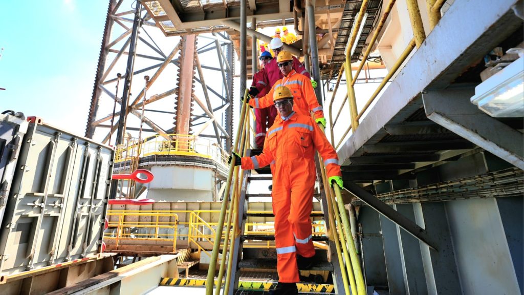 وشهد الوزير في مستهل الزيارة فيلماً وثائقياً استعرض اجراءات السلامة و الإمكانات الفنية لجهاز الحفر القاهر-2. وفي الوقت نفسه، تم تقديم عرض موجز عن أنشطة الحفر في حقل دنيس، الذي تنفذه شركة بتروبل، وهي الشركة القائمة بالعمليات المشتركة بين الهيئة المصرية العامة للبترول وشركة إيني.والتقي الوزير مع فريق العمل المسؤول عن إدارة العمليات علي الحفار ، مثمنًا الجهود المبذولة لرفع كفاءة التشغيل.