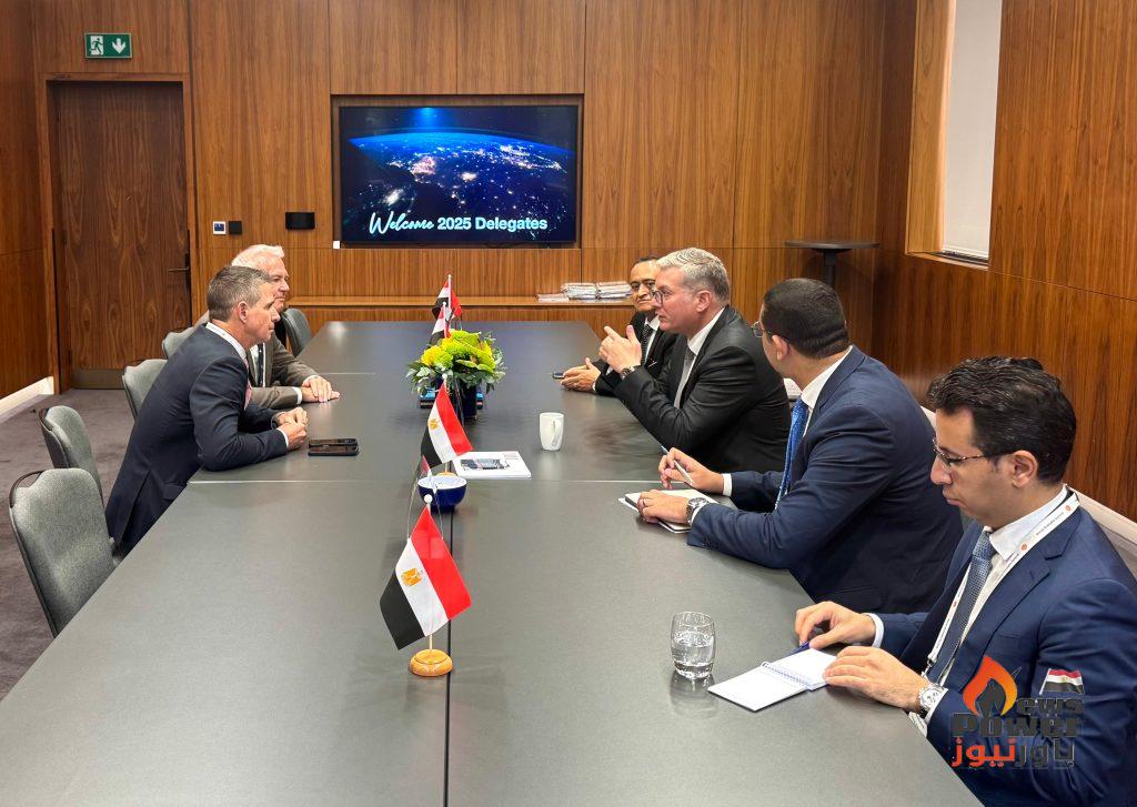 عقد المهندس كريم بدوى وزير البترول والثروة المعدنية علي هامش مشاركته في القمة العالمية للطاقة في لندن مجموعة من اللقاءات الثنائية مع عدد من شركات الطاقة العالمية بحضور المهندس محمود عبدالحميد العضو المنتدب التنفيذي للشركة المصرية القابضة للغازات الطبيعية ( إيجاس ) و الدكتور محمد رضوان نائب رئيس شركة جنوب الوادي القابضة للبترول للاتفاقيات والاستكشاف ومدير بوابة مصر للاستكشاف والإنتاج ، حيث التقى الوزير بالسيد هونجاوي ما، مدير الاستكشاف العالمي بشركة سينوك (CNOOC) الصينية لبحث فرص التعاون والاستثمار في مجالات البحث والاستكشاف فى مصر، وخاصة مناطق البحرين المتوسط والأحمر، التي تحظى بأهمية استراتيجية للشركة الصينية، في ظل سعيها للتوسع والتواجد لأول مرة بمنطقة الشرق الأوسط على ان تكون مصر نقطة البدء .