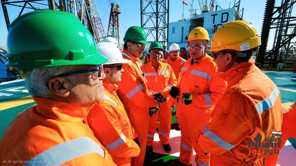 وخلال الجولة، تابع الوزير سير العمل في حفر البئر من على متن الحفار البحري Trident 16 التابع لشركة Shelf Drilling، والذي يعمل حالياً في خليج السويس، حيث يستهدف بئر بلاعيم البحري 133 الوصول إلى عمق يتجاوز 2600 متر.