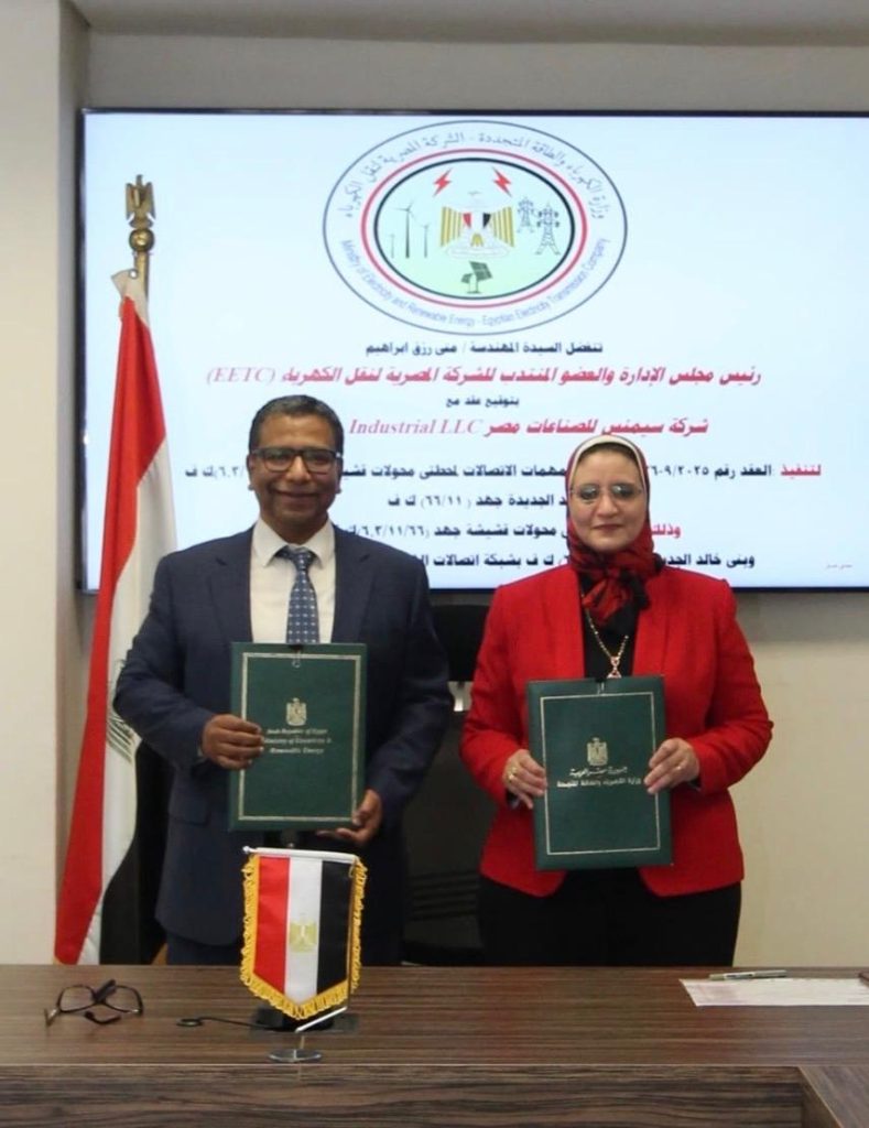 في إطار خطة وزارة الكهرباء والطاقة المتجددة لتعزيز كفاءة واستقرار الشبكة القومية الموحدة، وبناءً على التوجيهات والمتابعة المستمرة من معالي الدكتور محمود عصمت، وزير الكهرباء والطاقة المتجددة، وقّعت اليوم المهندسة منى رزق، رئيس مجلس إدارة الشركة المصرية لنقل الكهرباء، عقداً جديداً مع شركة سيمنس للصناعات مصر.