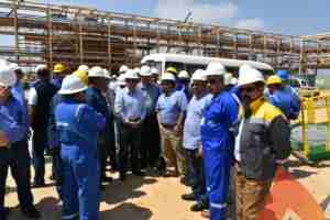 في اطار سلسلة الزيارات الميدانية المتتالية لمشروع تنمية حقل ظهر للغاز الطبيعى لمتابعة موقف تقدم الأعمال وتحفيز العاملين والتواصل المباشر مع منفذى المشروع مما يعطى دفعات قوية لأعمال التنفيذ ، تفقد المهندس طارق الملا وزير البترول والثروة المعدنية سير العمل بالمشروع في محافظة بورسعيد يرافقه كل من وكيل أول الوزارة لشئون الغاز ورئيس الشركة المصرية القابضة للغازات الطبيعية ورؤساء شركات بتروبل وإنبى وبتروجت ونائب رئيس شركة إيجاس للإنتاج