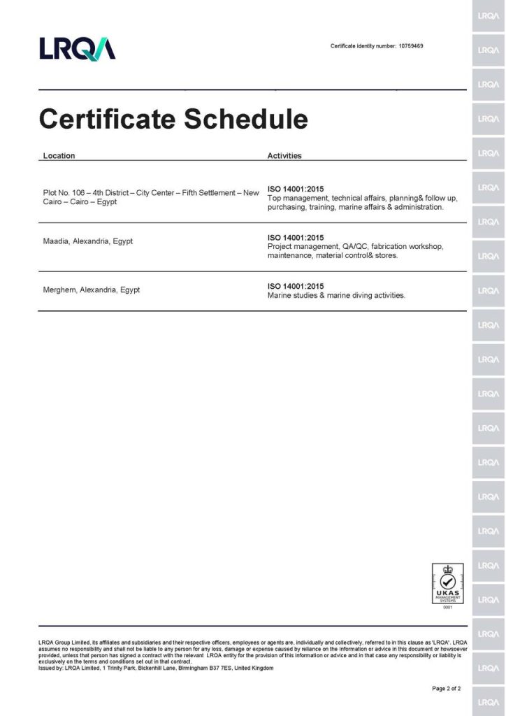 وتُعد شهادة ISO 14001 من أبرز المعايير العالمية في مجال نظم الإدارة البيئية، إذ تؤكد امتلاك الشركة لنظام متكامل يهدف إلى تحسين الأداء البيئي، من خلال الاستخدام الأمثل للموارد، وتقليل المخلفات، وترشيد استهلاك الطاقة، بما يحقق التوازن بين متطلبات التشغيل والحفاظ على البيئة.