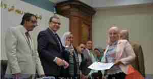 المهندسة فاطمة محمد عامر مدير عام مساعد الكهرباء والحماية الكاثودية هندسة وتطوير الشبكات / المركز الرئيسي لحصولها على المركز الأول في المسابقة الثقافية (الزجل) عنوان القصيدة الفائزة ( مصر بتصرخ )