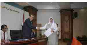 ناني حسن مرسى مدير عام مساعد الخدمات المساعدة بمنطقة البحر الأحمر لحصولها على المركز الأول في المسابقة الثقافية (البحوث العمالية ) البحث المقدم بعنوان التنمية المستدامة