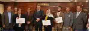 زينب عبد القادر رئيس قسم التصميمات بالإدارة العامة للإعلام المركز الرئيسي لحصولها على المركز الرابع في مسابقة الفنون التشكيلية (الرسم الزيتي).