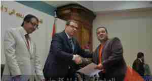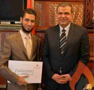 أحمد رجب يوسف إداري بالمخازن بمصنع استخلاص البوتاجاز بالعامرية لحصوله على المركز الخامس في مسابقة تصميم اللوحات الإرشادية