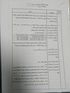 اما بخصوص موقف شركة صان مصر بشأن المشروعات المسندة اليها وافق المجلس ان تقوم شركة صان مصر “emc” بتنفيذ المشروعات المسندة اليها تم التنفيذ على حساب شركة صان مصر emc بشأن المشروعات المسندة اليها لتوريد وتركيب اجهزة اتصالات تعمل بالالياف الضوئية لربط محطات محولات بنبان 1-2-4 جهد 22/220 كيلو فولت محطة محولات بنبات جهد 22/220/500 كيلو فولت بالمحطات المقابلة , بمحطة محولات اسيك المنيا جهد 66 كيلو فولت , محطتى محولات الفيوم الجديدة واهناسيا مع اخطارها بذلك على عنوانها بكتاب موصى عليه بعلم الوصول .