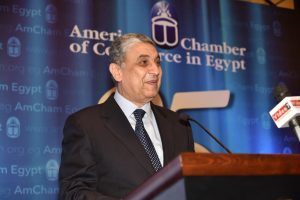 استعرض الدكتور شاكر عرضاَ تقديمياَ قدم فى بدايته الشكر إلى الغرفة التجارية الأمريكية بالقاهرة على تنظيم هذا الملتقى الهام