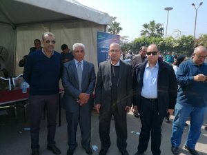 المهندس ناجي عارف رئيس شركة شمال القاهرة للتوزيع وبجواره المهندس محمد مختار رئيس شركة القاهرة لإنتاج الكهرباء.اثناء الادلاء باصواتهم في انتخابات نقابة المهندسين اليوم