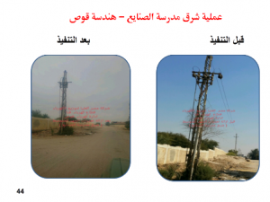 فيما يتعلق بشبكة الجهد المتوسط قد تم إحلال وتجديد وتنفيذ عدد من التوسعات (195) عامود، (45) طن موصلات هوائية ، (132) كم كابلات ،