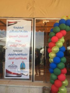 اقامت الشركة العامة للبترول اليوم احتفالية كبرى بمناسبة يوم اليتيم شارك فيها الدكتور مهندس محسن النوبي رئيس مجلس ادارة الشركة والمهندس عبد المنعم حافظ رئيس شركة أنابيب البترول ولفيف من القيادات والعاملين حيث أسند النوبي تنظيم إقامة الاحتفال لجنة خاصة ليخرج الاحتفال بالصورة التي تليق بمكانة الطفل اليتيم وكذلك من منطلق مكانة الشركة التي تشكل ركيزة هامة في الاقتصاد القومي كاحدي شركات القطاع العام بقطاع البترول وما تقدمه من خدمات اجتماعية للبيئة المحيطة لجميع مناطقها كمدينة رأس غارب بالبحر الأحمر ومدينة رأس سدر بسيناء الحبيبة